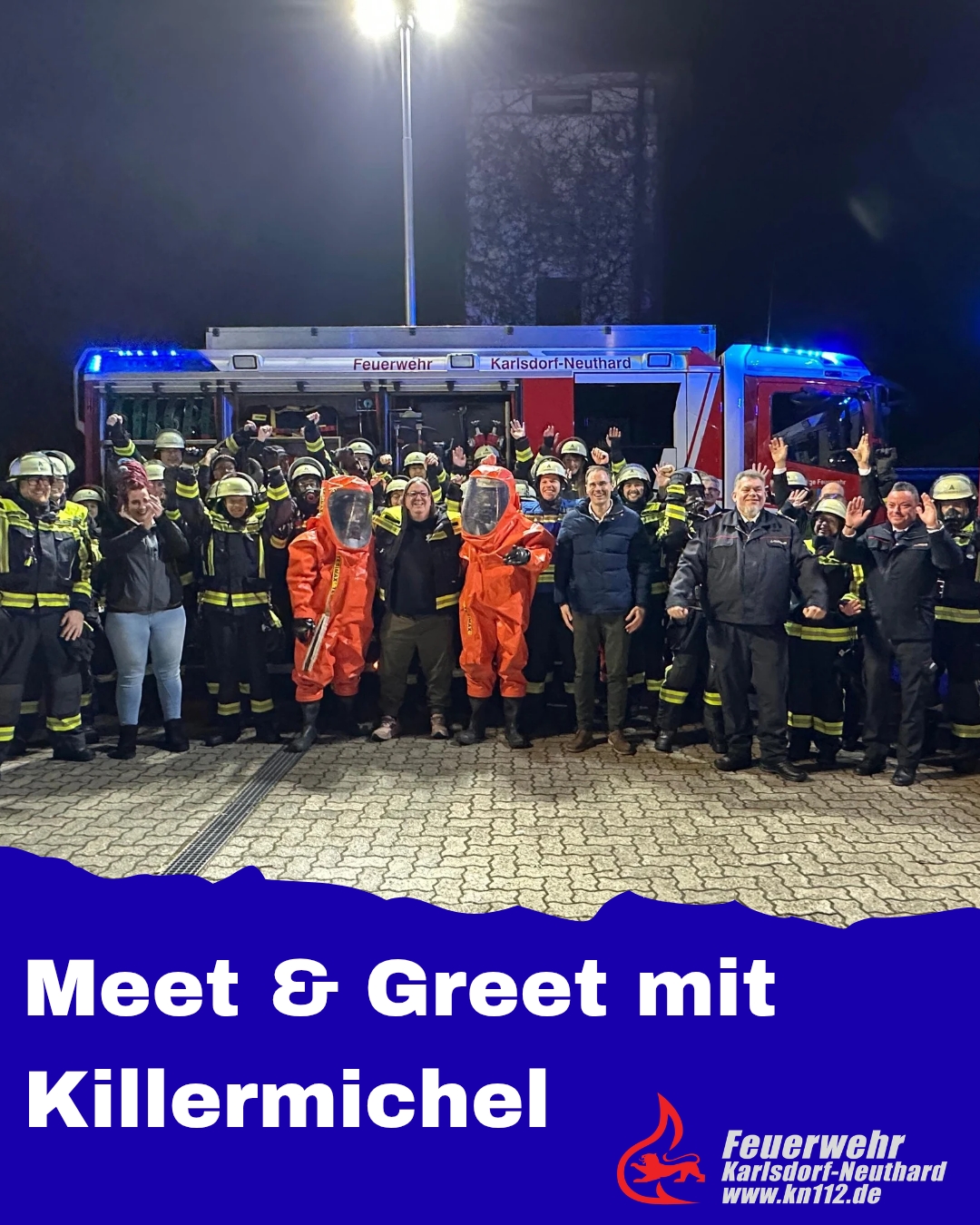 Killermichel besuchte die Freiwillige Feuerwehr Karlsdorf-Neuthard zu einem Meet & Greet am Feuerwehrhaus Neuthard.