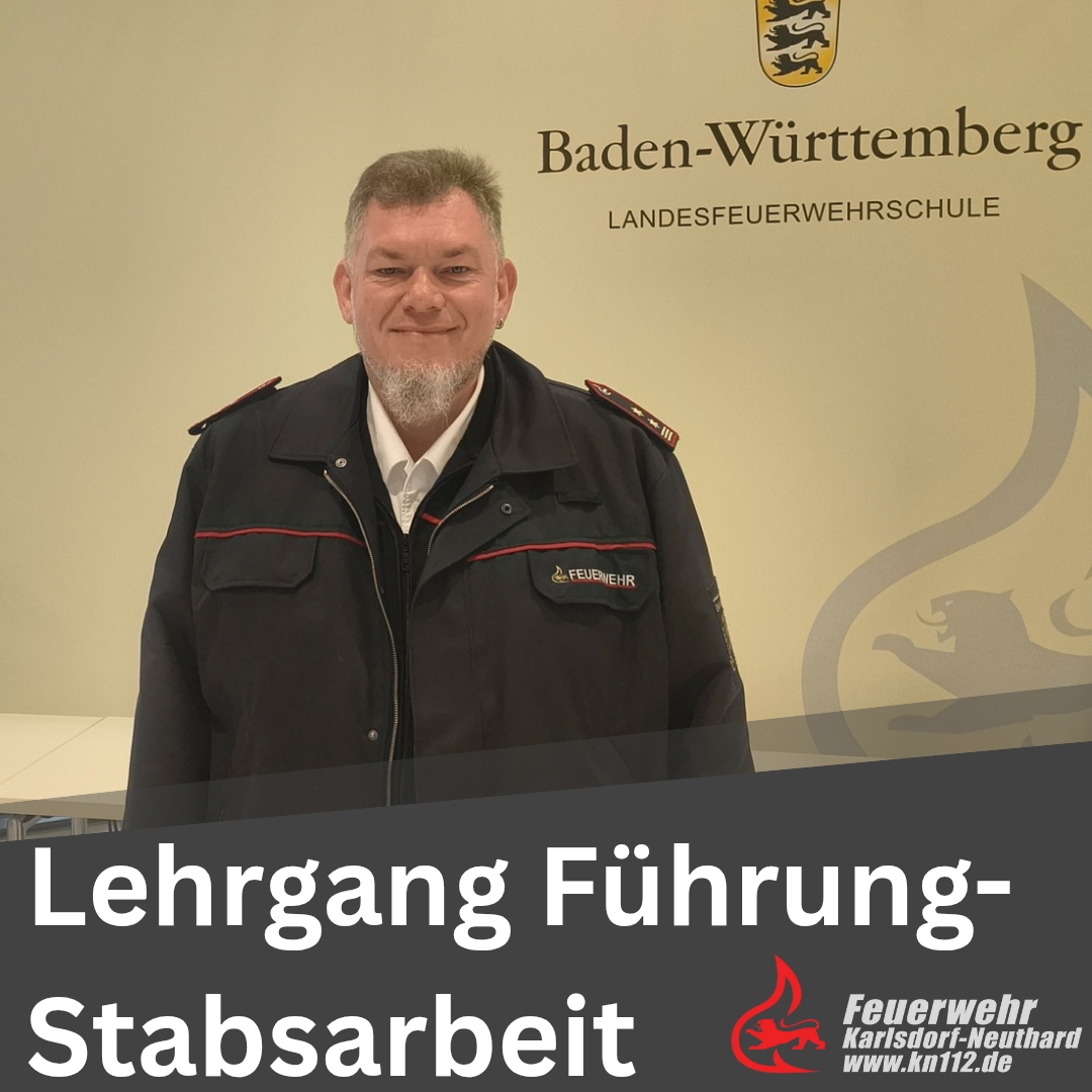 Unser Kommandant Georg Kistner hat vom 6. bis 10. Oktober 2025 an der Landesfeuerwehrschule Baden-Württemberg in Bruchsal erfolgreich den Lehrgang „Einführung in die Stabsarbeit – Führungsstab“ absolviert.