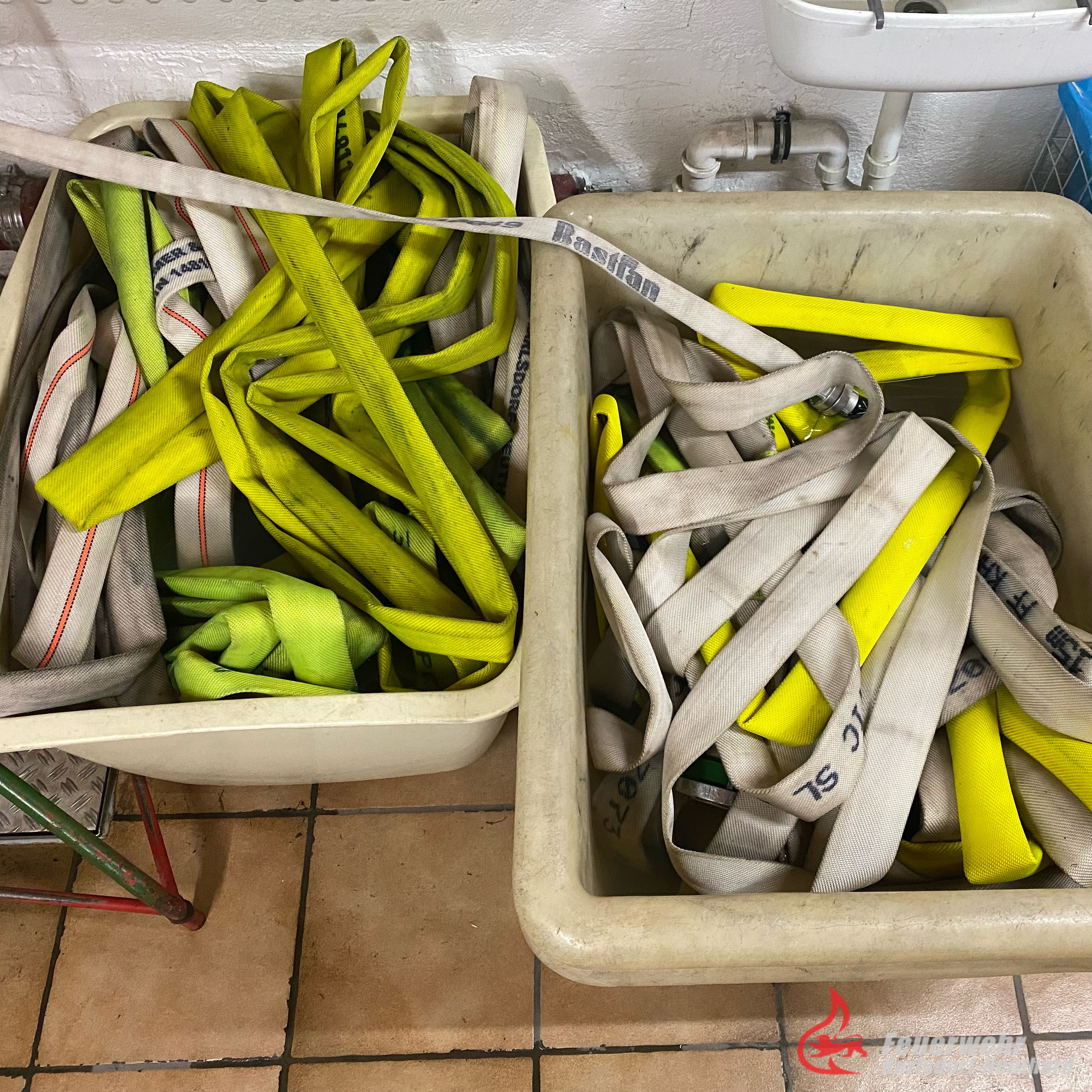 Die Schläuche müssen gereinigt, geprüft, getrocknet und verräumt werden. Das wird wohl noch einige Tage in Anspruch nehmen.